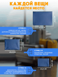 Органайзер для путешествий поможет с перевозкой одежды, обуви и мелочей не только на самолете, но и в машине. Сумки для чемодана обеспечивают экономию места, что позволяет взять с собой в командировку больше нужных предметов. Это набор можно не только брать в дорогу, но и использовать в домашних условиях.