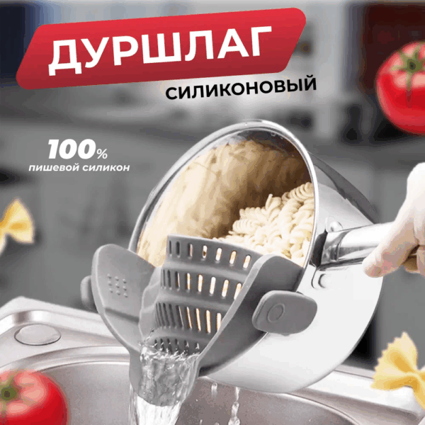 Забудьте о громоздких дуршлагах! Силиконовый дуршлаг на прищепках — это компактное и удобное решение для любой кухни. Он легко крепится прямо к краю кастрюли, сковороды или сотейника, позволяя быстро и безопасно слить воду, не перекладывая продукты.