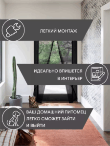 Девять пар магнитов аккуратно вшиты в шторы и позволяют мгновенно открываться и закрываться полотнам. За счет этого шторы всегда остаются плотно закрытыми. После установки сетка не препятствует открыванию и закрыванию дверей, не мешает передвижению домашних животных.
