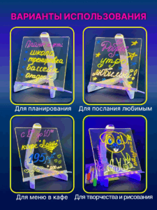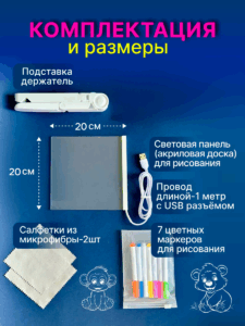 Этот планшет с ночником для рисования предлагает бесконечные возможности для творчества детей и взрослых. Акриловое прочное безопасное стекло позволяет рисовать маркерами и стирать нарисованное столько раз, сколько хотите. В комплекте идут семь разноцветных маркеров, чтобы ваш ребенок мог воплощать свои самые смелые фантазии и наполнять комнаты уютом и весельем.