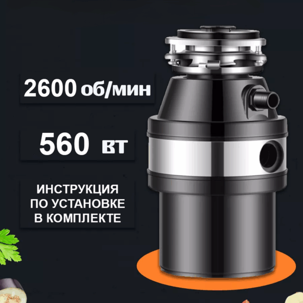 Диспоузер в раковину обладает мощностью 560 Вт и скоростью вращения 2600 оборот в минуту, что обеспечивает быструю и эффективную работу.