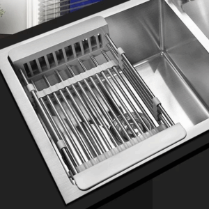 Раздвижная сетка-сушилка для раковины отлично подойдет для сушки овощей и фруктов, посуды и столовых приборов после мытья. Раздвижная конструкция легко адаптируется к раковинам любого размера. Сетка-сушилка изготовлена из нержавеющей стали. Материал не боится воды и не подвержен коррозии. Конструкция сушилки прочная.