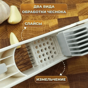 Наша универсальная чеснокодавка ручная- это идеальный помощник на вашей кухне! Благодаря инновационному дизайну и прочным материалам, вы сможете легко измельчить чеснок, нарезать его на слайсы, а также очистить овощи и фрукты встроенной в корпус чисткой.