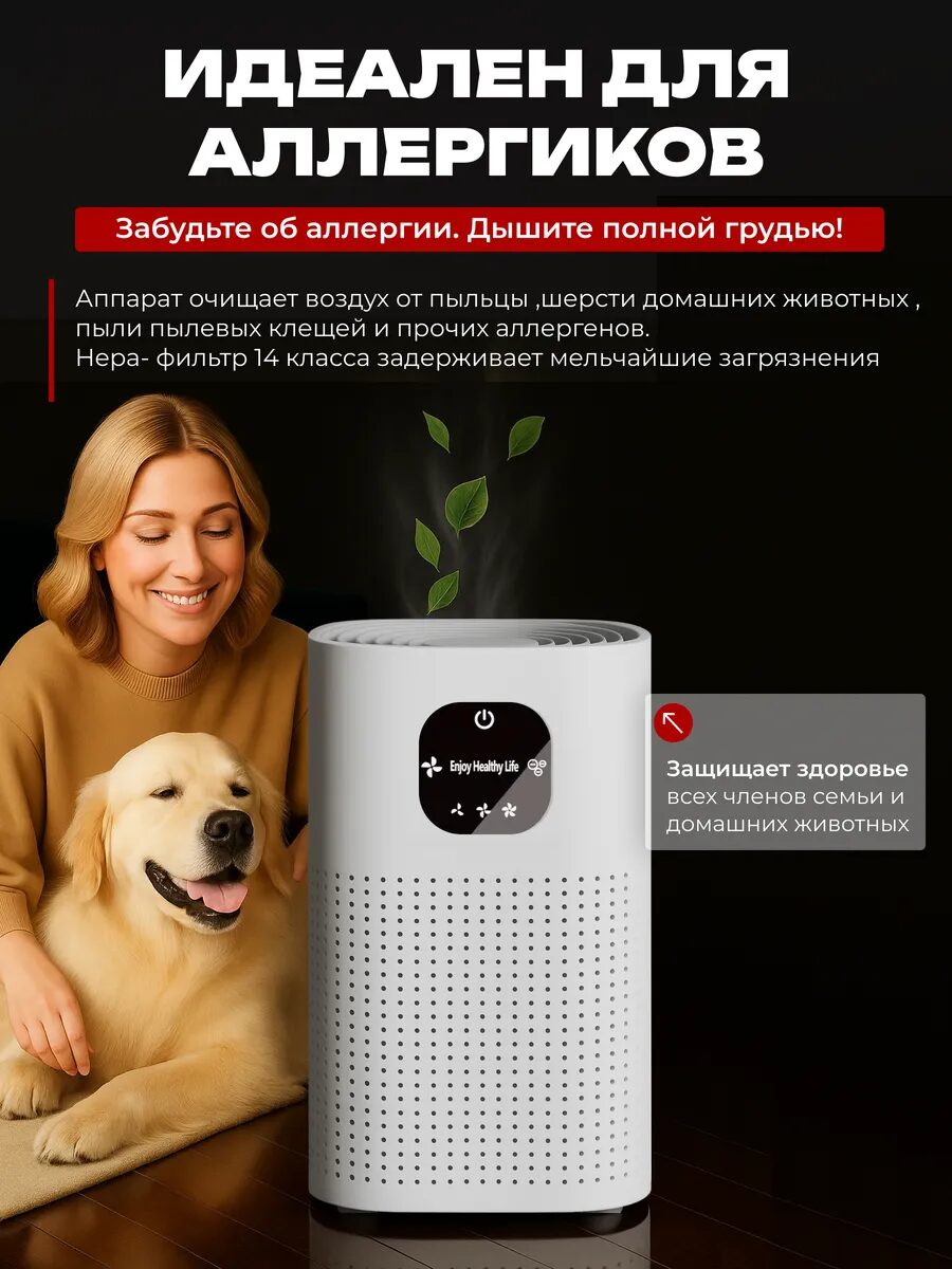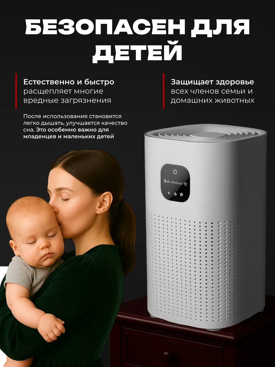 Очиститель воздуха от пыли и аллергенов: уменьшает симптомы аллергии и количество пыли в помещении. Дезинфектор воздуха от запахов: устраняет неприятные запахи, включая табачный дым, ароматы животных и химических веществ.