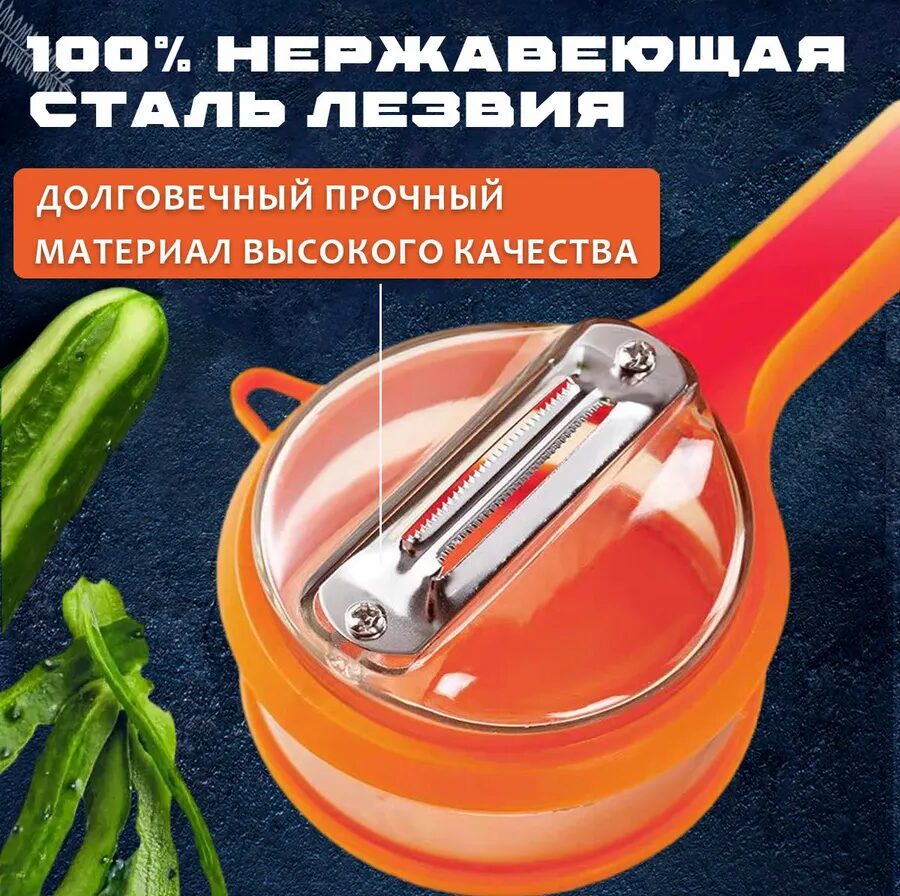 Овощечистка с контейнером для кожуры — удобный и практичный помощник на кухне, который сохраняет чистоту и экономит ваше время. Острый лезвие легко и аккуратно снимает кожуру с овощей и фруктов, а встроенный контейнер сразу собирает отходы, не позволяя им разлетаться по столу или падать на пол.