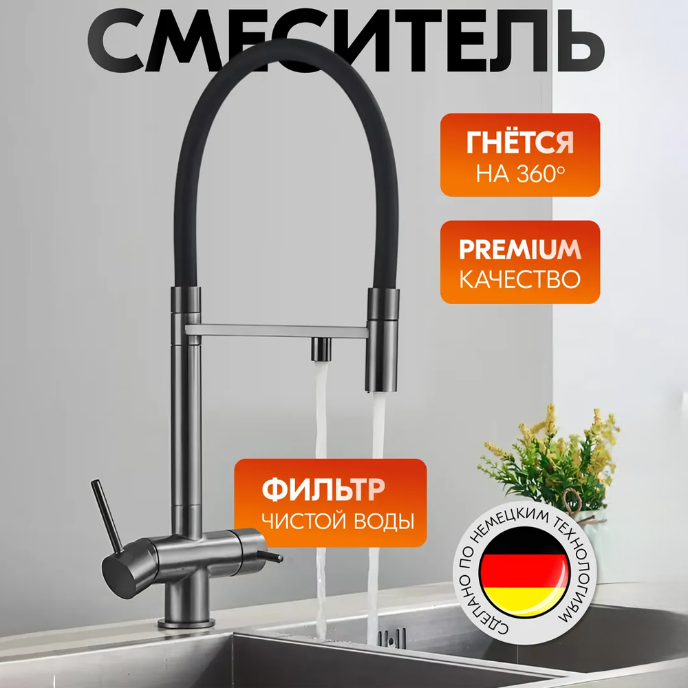 Смеситель для кухни с гибким изливом и выводом для фильтрованной воды
