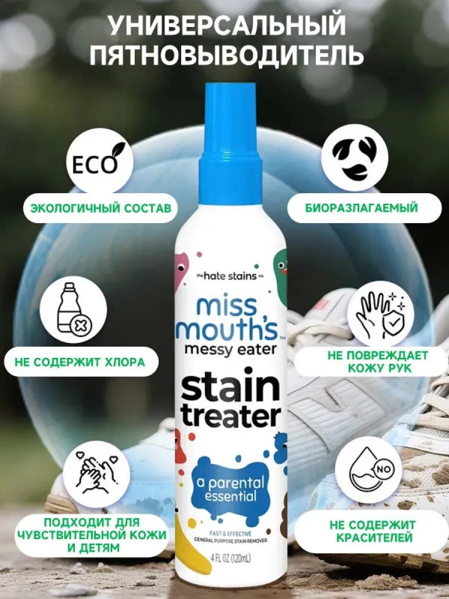 Удобный формат спрея позволяет точно наносить средство прямо на пятно без замачивания и лишних усилий. Формула подходит для большинства типов тканей и помогает справляться с пятнами от еды, напитков, жира, косметики и других повседневных загрязнений.