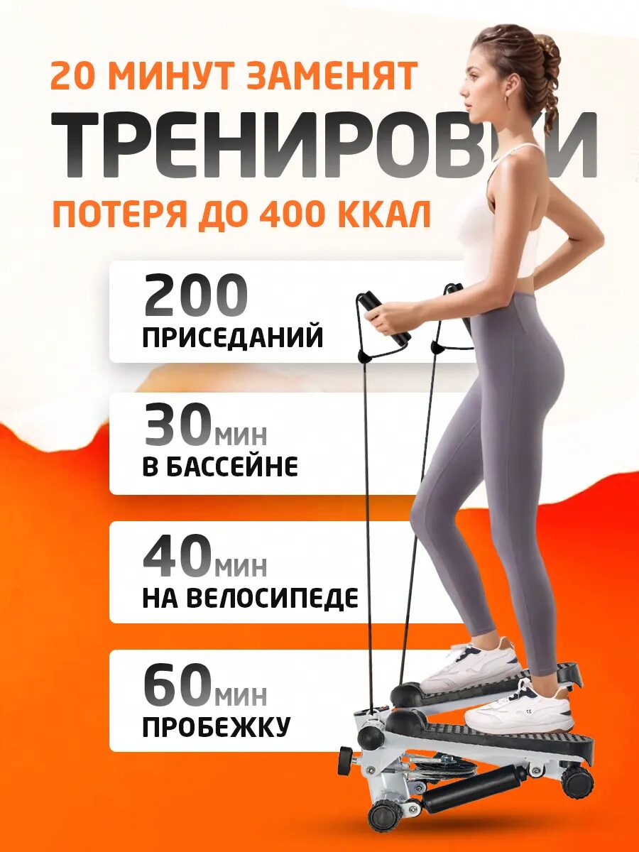 Стэп создан для эффективной тренировки мышц ног (икр, бедер и ягодиц), для похудения, тренировки сердца и сжигания жира. Министеппер имитирует подъем по лестнице со ступеньки на ступень. Ноги ставятся на педали с нескользящим покрытием, а затем вес тела попеременно переносится с одной ноги на другую.