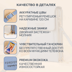 Данная модель сумочки для самых необходимых принадлежностей, подойдет для потребностей современной девушки. Многофункциональная сумка на плечо, вертикальной формы, с регулируемыми плечевыми ремнями, в которой вы можете по разделам хранить ключи, наличные, документы, банковские карточки, косметику, салфетки и конечно же, ваш телефон.