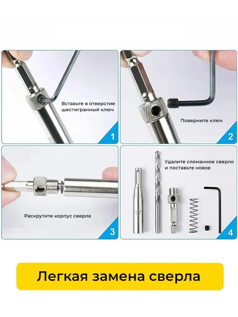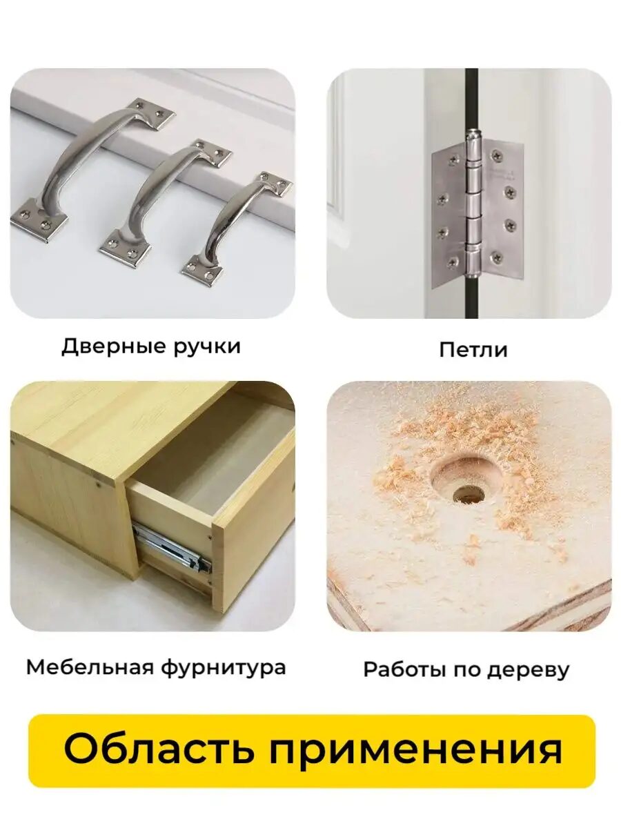 Особенности модели: Точное позиционирование, отсутствие смещения, древесная стружка будет автоматически выгружаться из отверстий с обеих сторон верхней части сверла, и сверло не застрянет.