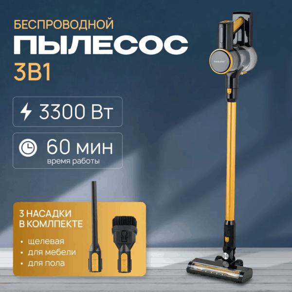 Беспроводная модель позволяет двигаться свободно без ограничений, а компактное хранение делает пылесос идеальным выбором для квартир любого размера. С ним уборка превращается в лёгкое и быстрое занятие, а ваш дом всегда остаётся чистым и ухоженным.